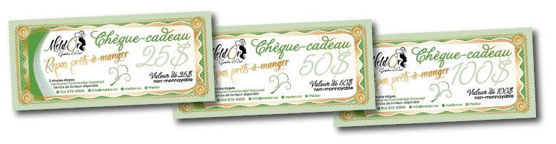 Offrez des repas MeldOr en cadeau! 25$, 50$ et 100$ Contactez-nous!